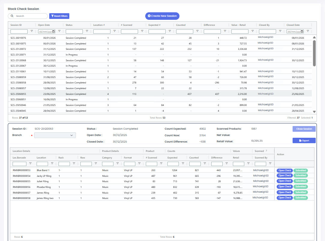 stockCheck Lists / displays items organized by Bin Location, Category, or Last Count Date to facilitate physical audits and cycle counts. It enables real-time comparison between system-recorded levels and physical stock-on-hand, allowing for "one-click" adjustments when discrepancies are found.